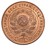 5 копеек 1924 года. Лиц. ст.: шт. 1.1 — з. ш. выпуклый, сетка тонкая, серп узкий. Гурт гладкий. Медь, 16,32 г. Сохранность отличная, лёгкая патина, штемпельный блеск. ФедоринVI# 1.