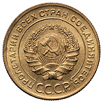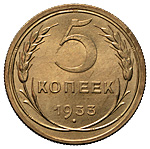 едкий экземпляр из выпуска монет специального чекана. Такие монеты улучшенного качества, крайне ограниченным тиражом — всего несколько десятков комплектов, были отчеканены на Ленинградском Монетном Дворе в конце 50-х гг. ХХ в.