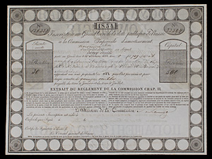 Государственная комиссия погашения долгов. Билет на капитал бессрочный в 500 рублей, третьего 6% займа российской серебряной монетой, записанный в Государственную долговую книгу на имя Администрации под управлением Гопе и Ко, Кетвиха и Фоомберга и вдовы В. Борски в Амстердаме. 1854 г. Лит. А., № 156329, № 33594. Сохранность отличная.