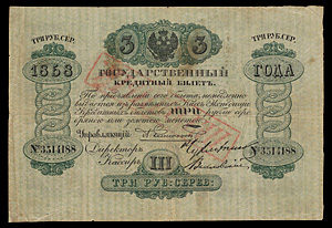 Государственный Кредитный Билет 3 рубля серебром 1858 года