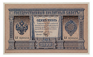 Государственный Кредитный Билет 5 рублей 1898 года, ББ 188097. Подписи: управляющий Э. Плеске, кассир Софронов. Сохранность очень хорошая. Кардаков# I.1.680 (2,5 дойчмарки). Денисов# К-26.1. Рябченко# 703. Довольно редкий.