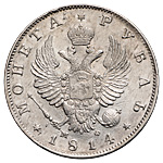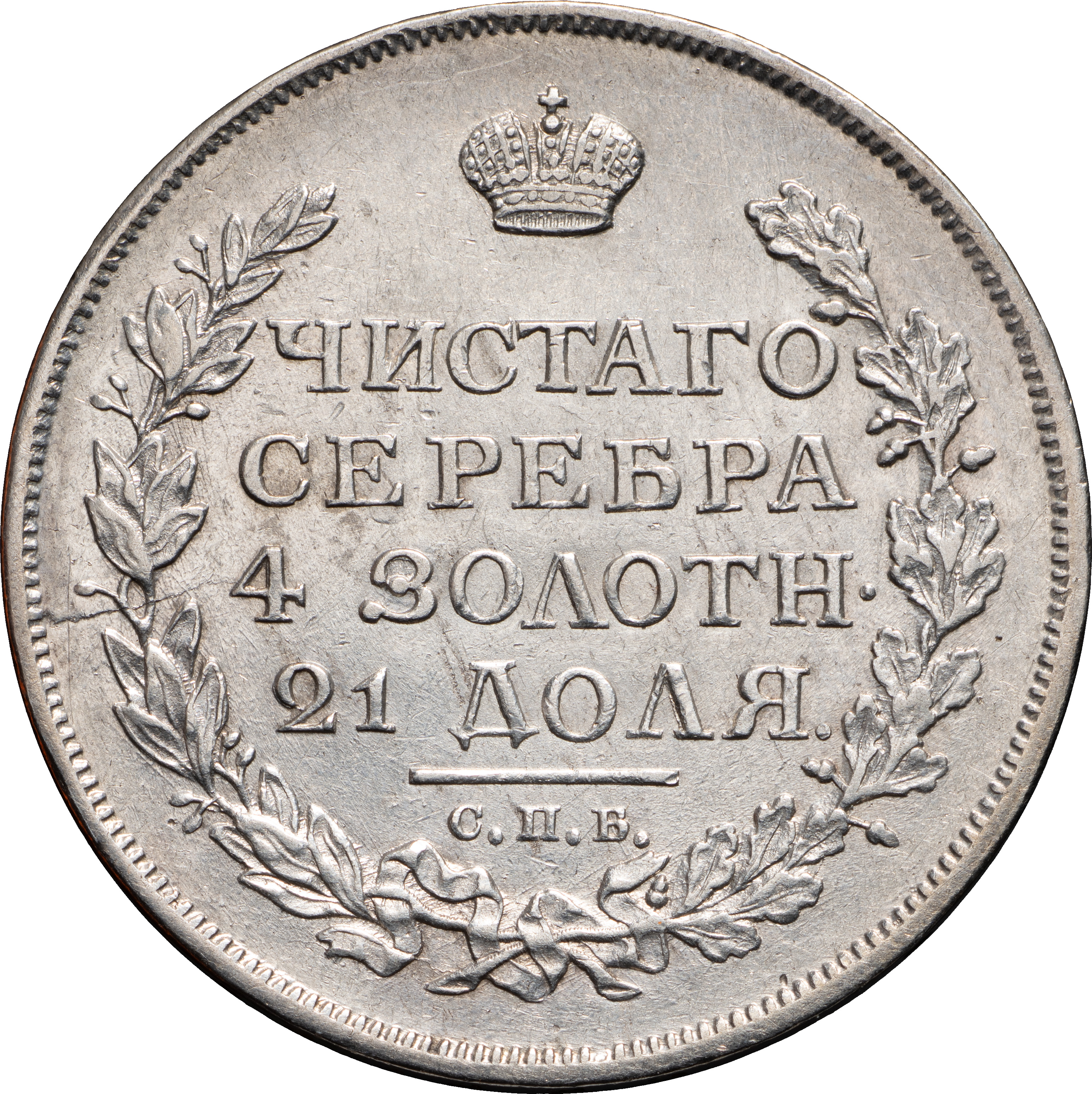 1 рубль 1814 года, СПБ-МФ. Серебро, 20,81 г. Сохранность очень хорошая, легкая патина. ГМ# 12.7. Severin# 2682 (точка). Уздеников# 1412. Биткин# 109. 1 рубль 50 копеек по Петрову.