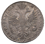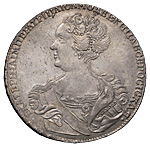 1 рубль 1725 года, СПБ. Лиц. ст.: «...ЕКАТЕРIНА...». Об. ст.: «СП-Б» под орлом, легенда разделена трилистниками. Гурт узор. Серебро, 27,63 г. Сохранность близкая к превосходной, приятная легкая патина, небольшой дефект гурчения заготовки. ГМ# 5.8. Severin# 752 (точка). Уздеников# 0635 (точка). Дьяков# 56. Биткин# 124. Редкий, 3 рубля по Ильину.
