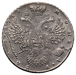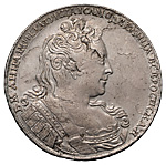 1 рубль 1730 года. Лиц. ст.: край корсажа параллелен окружности. Об. ст.: малые короны без крестов. Серебро, 27,83 г. Сохранность почти отличная, слоение металла заготовки. ГМ# 1.13. Severin# 1047 (точка). Уздеников# 0693. Дьяков# 17. Биткин# 22 (R). Полуйко# 30.18, # 09 (!!). Редкий, 3 рубля по Ильину, 4 рубля по Петрову.