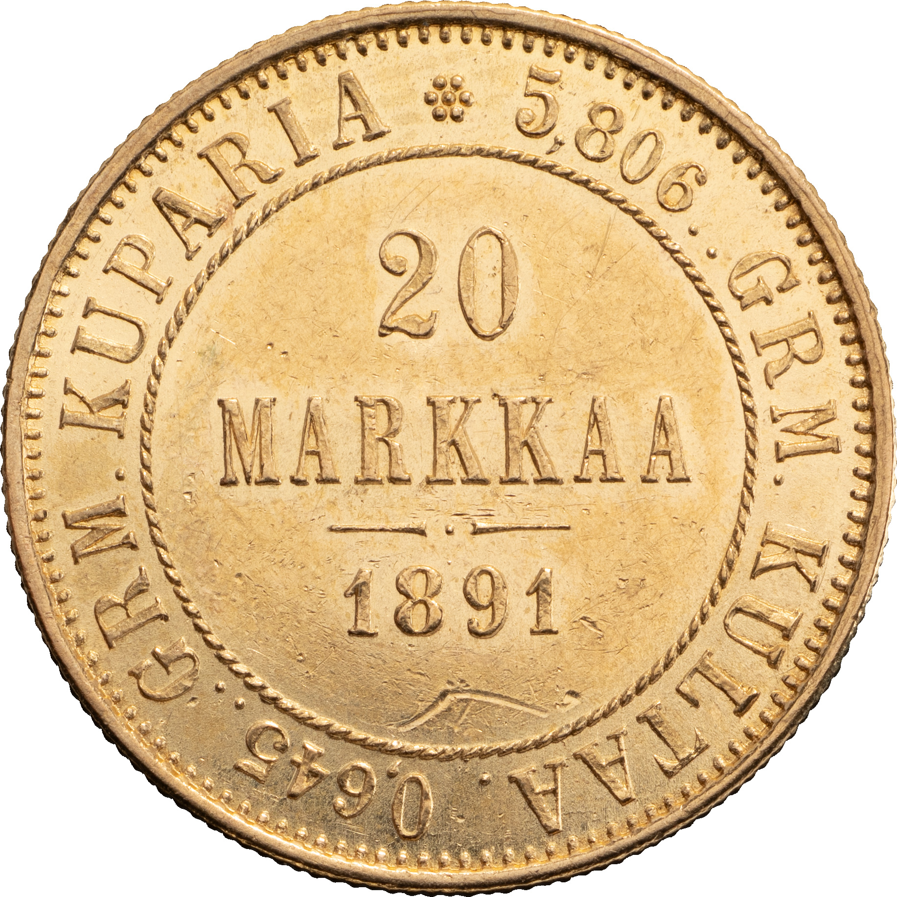 Для Финляндии. 20 марок 1891 года