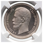 50 копеек 1897 года, АГ-одна звездочка на гурте, Парижский монетный двор. Серебро. Монета в пластиковой капсуле (слабе) NGC, PF 62 ULTRA CAMEO. Severin# 4041. Уздеников# 2081. Биткин# 197. Казаков# 85.