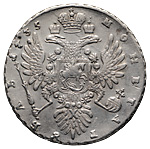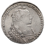 1 рубль 1735 года. Лиц. ст.: в начале круговой надписи точка, семь жемчужин в волосах (!). Серебро, 25,23 г. Сохранность почти отличная, царапина, следы чистки. ГМ# 9.8, вар. Severin# 1208. Уздеников# 0723. Биткин# 120, вар. 2 рубля по Петрову.