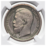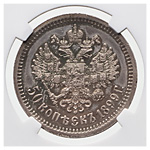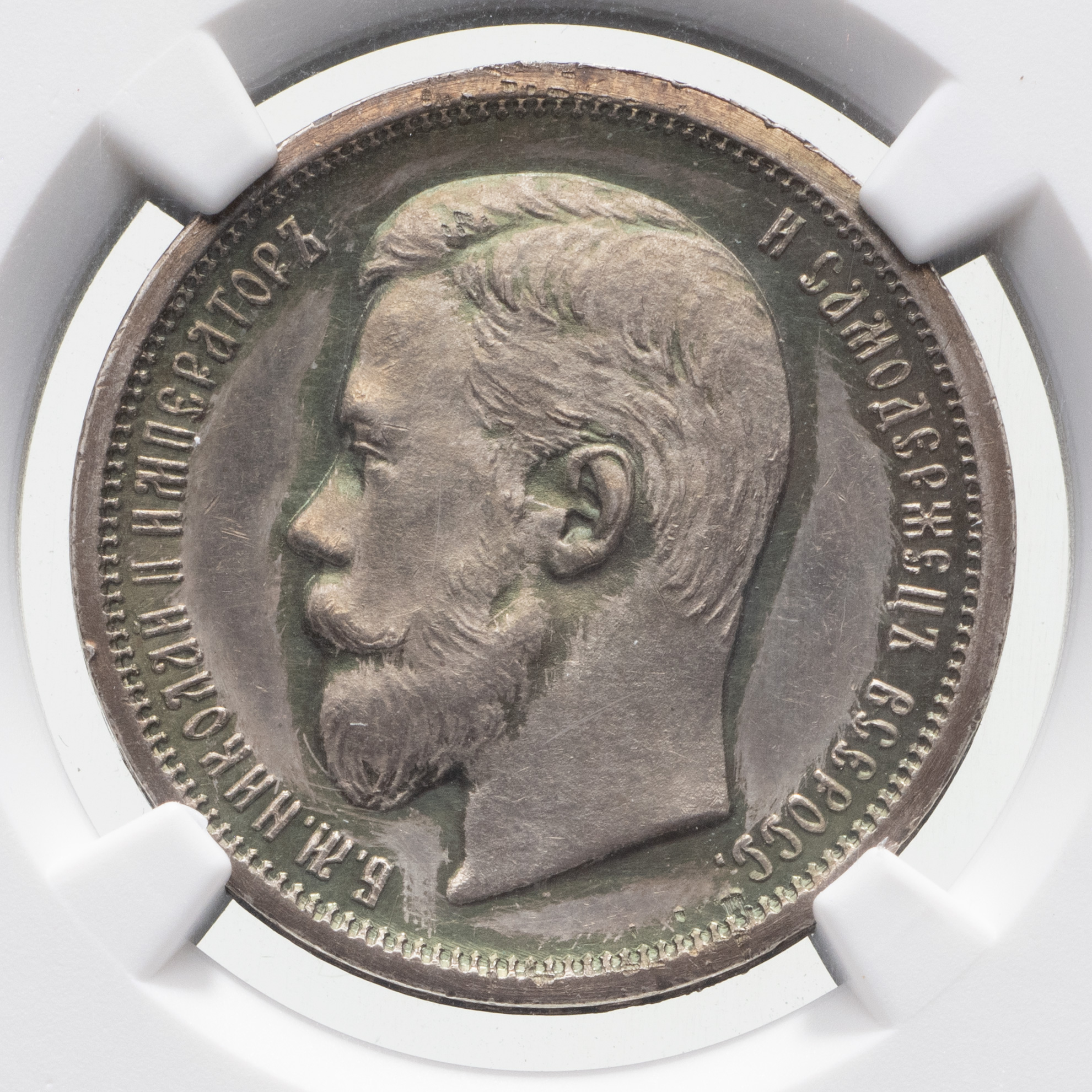50 копеек 1899 года, АГ-ЭБ. Серебро. Монета в пластиковой капсуле (слабе) NGC, PF 61, Ex. Soedermann. Severin# 4065. Уздеников# 2101. Биткин# 76. Казаков# 174. Довольно редкие.