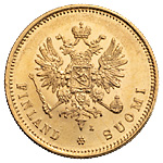 Для Финляндии. 20 марок 1911 года, L. Золото, 6,46 г. Сохранность отличная, штемпельный блеск. Уздеников# 4812 (черта). Биткин# 388. Holmasto99# 838. Казаков# 411.