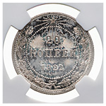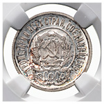 20 копеек 1922 года. Серебро. Монета в пластиковой капсуле (слабе) NGС, PF 64 CAMEO. ФедоринVI# 4 (П). Петров, Федорин# 12 (Р1). Редкие.