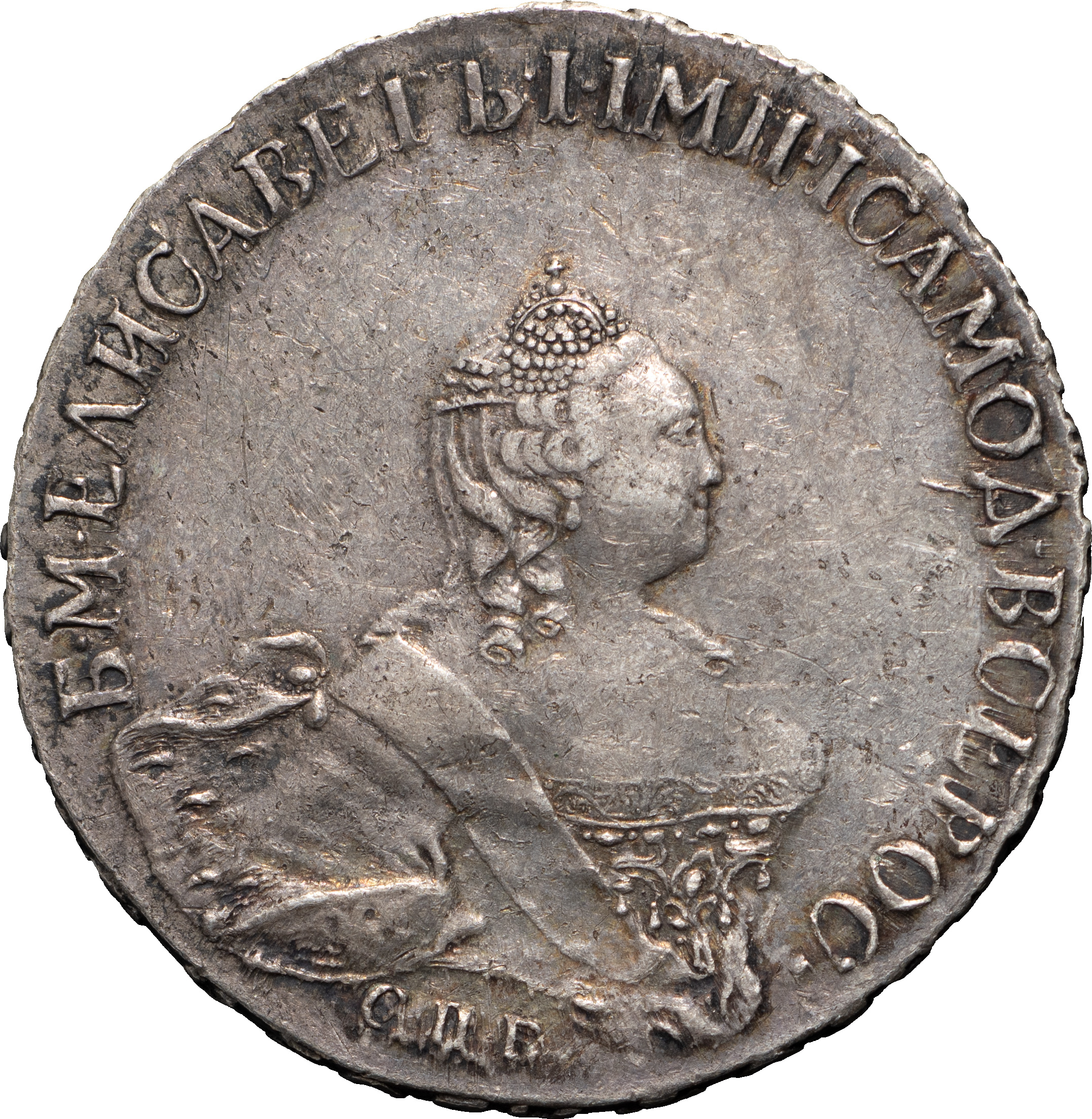 Полтина 1759 года, СПБ-BS-НК. Серебро, 13,39 г. Сохранность почти отличная, приятная старая патина, мелкие царапины по полю. ГМ# 17.18 (довольно редкая). Severin# 1708 (черта). Уздеников# 0910 (точка). Дьяков# 526 (R2). Биткин# 333 (R2). Очень редкая, 10 рублей по Ильину.