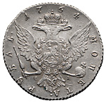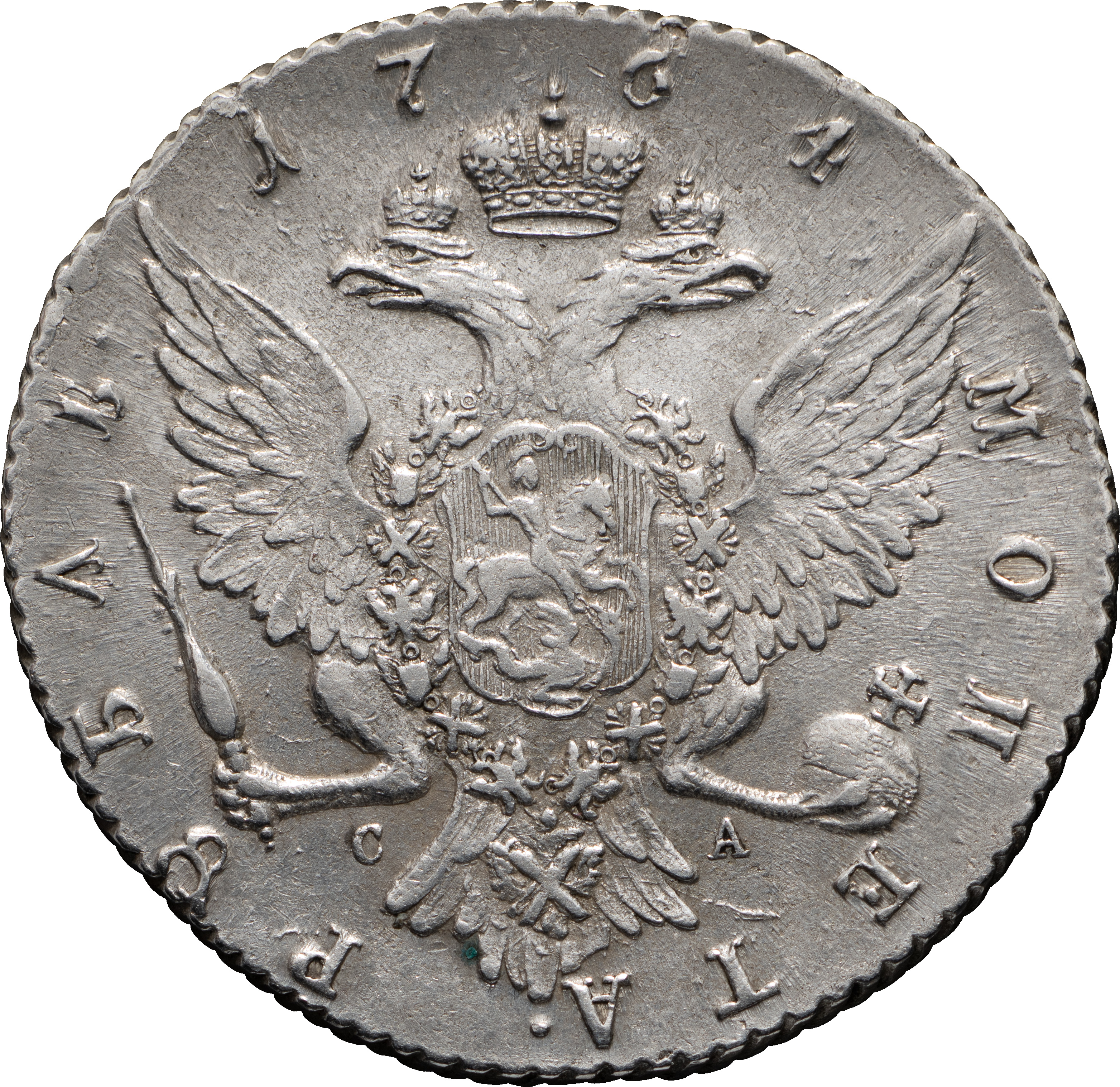 1 рубль 1764 года, СПБ-TI-СА. Серебро, 24,34 г. Сохранность почти отличная, царапины, следы чистки. ГМ# 3.9. Severin# 1940. Уздеников# 0954. Дьяков# 51. Биткин# 186. 2 рубля 50 копеек по Петрову.