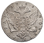 1 рубль 1764 года, СПБ-TI-ЯI. Серебро, 24,01 г. Сохранность почти отличная, чистка, следы коррозии. ГМ# 3.7. Severin# 1937. Уздеников# 0953. Дьяков# 50. Биткин# 185. 2 рубля 50 копеек по Петрову.