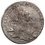 1 рубль 1765 года, СПБ-TI-ЯI. Серебро, 22,81 г. Сохранность почти отличная, лёгкая чистка, следы коррозии. ГМ# 4.11. Severin# 1960. Уздеников# 0967. Дьяков# 81. Биткин# 187. 2 рубля по Петрову.
