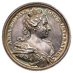 Медаль в память победы над турками при Азове в 1736 г. Медальеры: лиц. ст. — П.П. Вернер (на обрезе изображения: PPW•). Серебро, золочение; 29,99 г. Диаметр 43,3 мм. СРМ# 116. Дьяков# 80.1 (R3). Сохранность почти отличная. Очень редкая.