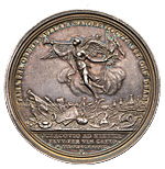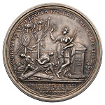 Надписи на об. ст. медали (лат.): вверху — «Взирает и на восток, и на запад», внизу под обрезом изображения — «Мир Европы сохранен, татары побеждены, Дон освобожден. 1736».