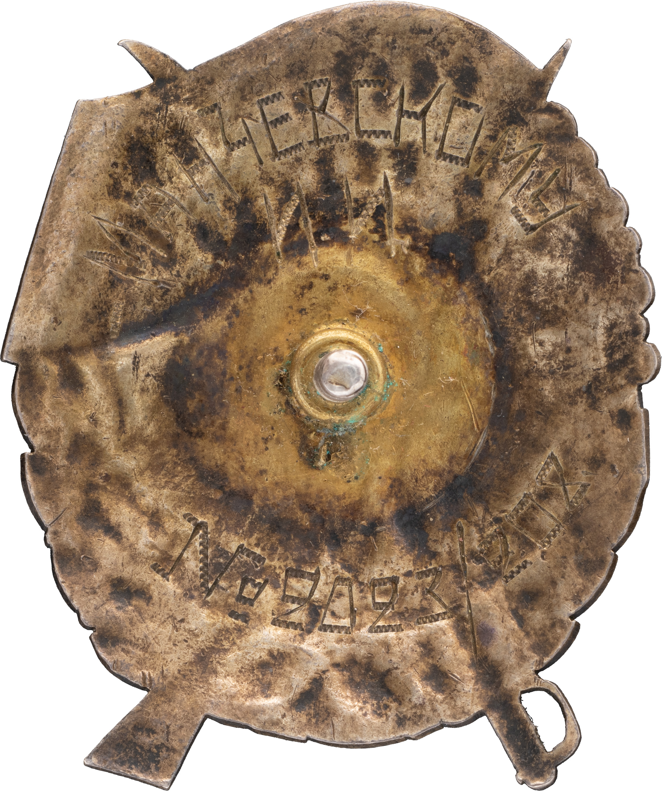 Знак «Герою Революционного Движения 1917–1918» с надписью «Вся власть Советам». СССР, 1930-е гг. Неизвестная мастерская. Без клейм. Серебро, эмаль, 22,89 г. Размеры 49,4×41,2 мм. Сохранность отличная, красивая патина. Пелинский И.А. Красная Гвардия и красные партизаны. Страницы истории и знаки // Антиквариат, предметы искусства и коллекционирования. 2008. № 6 (58). С. 102–127. # 24. Гравировки на об. ст. знака: вверху по окружности — «МАНЧЕВСКОМУ / И.И.», внизу — «№ 2023/208». Очень редкий.