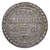 Полушка 1700 года. Лиц.ст.: розетка над орлом, ЦРЬ. Об.ст.: розетка, ПО-ЛУШКА, А?, Р ? ССIИ. Медь, 3,73 г. Сохранность очень хорошая. Уздеников# 2255 (черта). Brekke# 5 ( RR ). Diakov# 8. Биткин# 1425 ( R2 ). Редкая, 15 рублей по Ильину.
