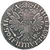Полтина 1705 года, портрет образца 1706 года. Серебро, 13,20 г. Сохранность почти отличная. Уздеников# 0491 (черта с точкой). Severin# 172 (черта). ГМ №19.12 (довольно редкая). Diakov# 8. Биткин# 559 ( R1 ). Редкая, 15 рублей по Ильину.