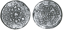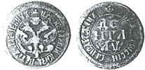 Полушка 1702 г. Лиц. ст.: вверху двоеточие и крест короны. Об. ст.: ПО-ЛУШКА, •ПО• между точек. Медь. Сохранность F. Узд#2261.
