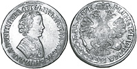 1 рубль 1705 г. МД. Серебро, 27,77 гр. Сохранность VF. Узд#0485 (•).