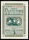 Тринадцатый выпуск 1939 года. 3 рубля, серия № 026400, разряд XIV, № 206. Сохранность отличная.