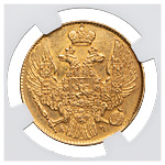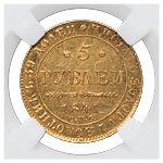5 рублей 1841 года, СПБ-АЧ. Об. ст.: без дужки над «Й» в слове рублей. Золото. Монета в пластиковой капсуле (слабе) ННР, AU55, коллекция Казакова В. В. ГМ# 22.1. Severin# 439. Уздеников# 0218 (точка). Биткин# 18. Редкие.