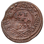 Деньга 1735 года. Производственный брак монетного двора: