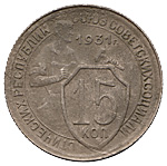 15 копеек 1931 года. Лиц. ст.: шт. 1.2 — три параллели. Об.