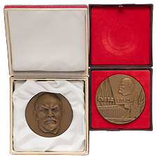 4. Медаль в память 100-летия со дня рождения В.И. Ленина. ЦК ВЛКСМ. ЛМД, 1970 г. Медальер Б.Л. Старис (об. ст. - внизу: СТАРИС). Томпак; 102,01 г. Диаметр 60,3 мм. Медаль вложена в