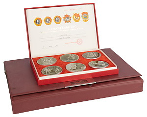 Медали вложены в оригинальную коробку с бархатной подложкой. Сохранность отличная. (6)