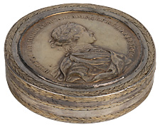 Табакерка с оттисками лицевой и оборотной сторон медали в память взятия Шлиссельбурга в 1702 г.