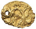 Золотой в четверть угорского 1654 года. Датированный «Жалованный золотой». Золото, 0,71 г. Сохранность очень хорошая, заломы краёв, отверстие (для ношения). Биткин, медали# 68 (R2). Очень редкий.