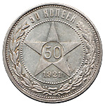 50 копеек 1921 года, АГ. Серебро, 9,98 г. Сохранность отличная, мелкие царапины. ФедоринVI# 1.