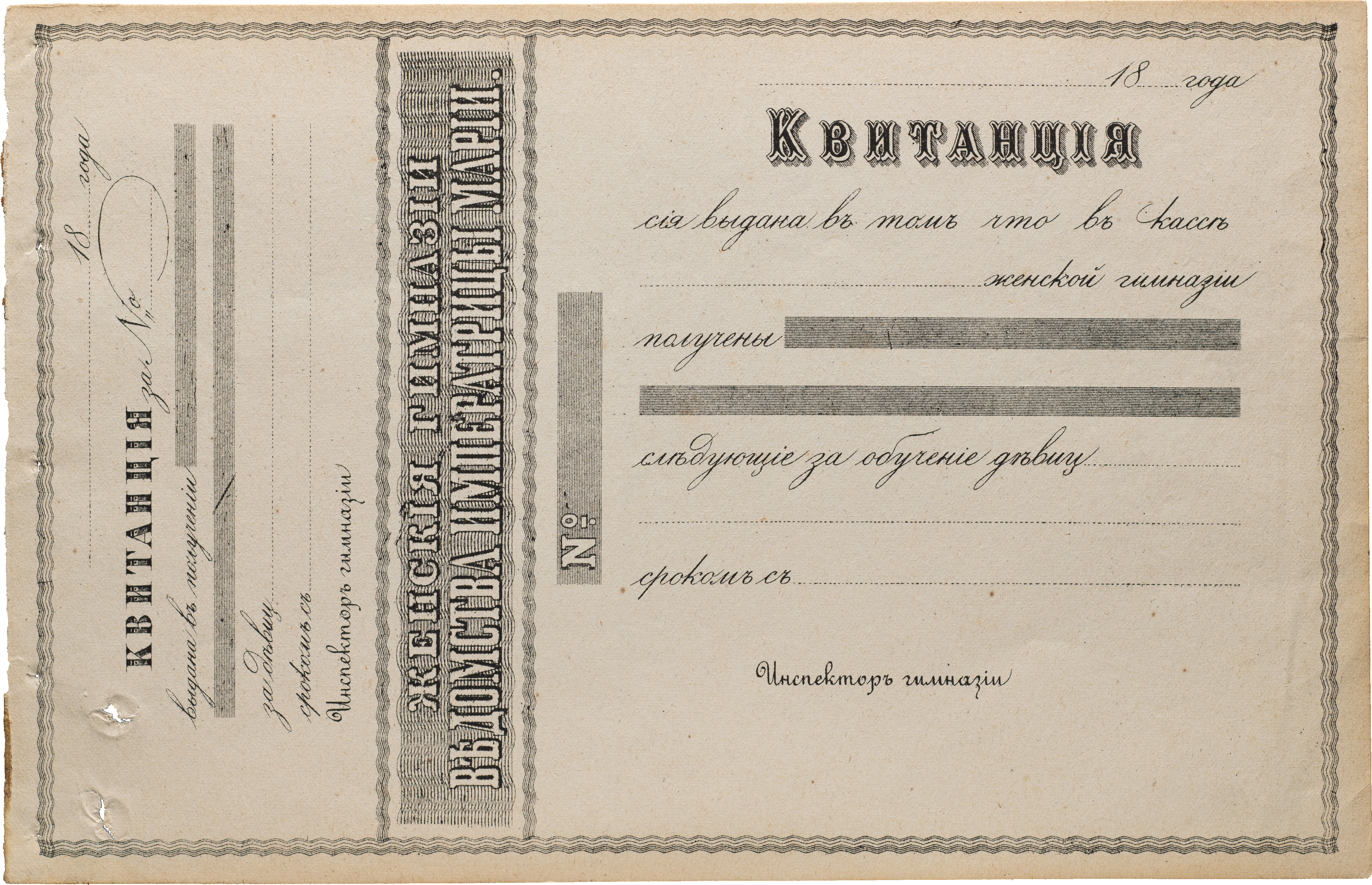 Женская Гимназия Ведомства Императрицы Марии. Бланк квитанции об уплате обучения