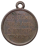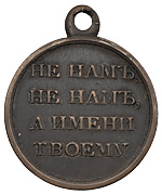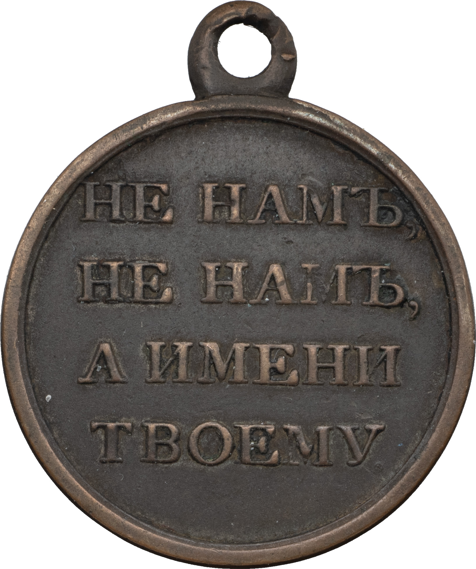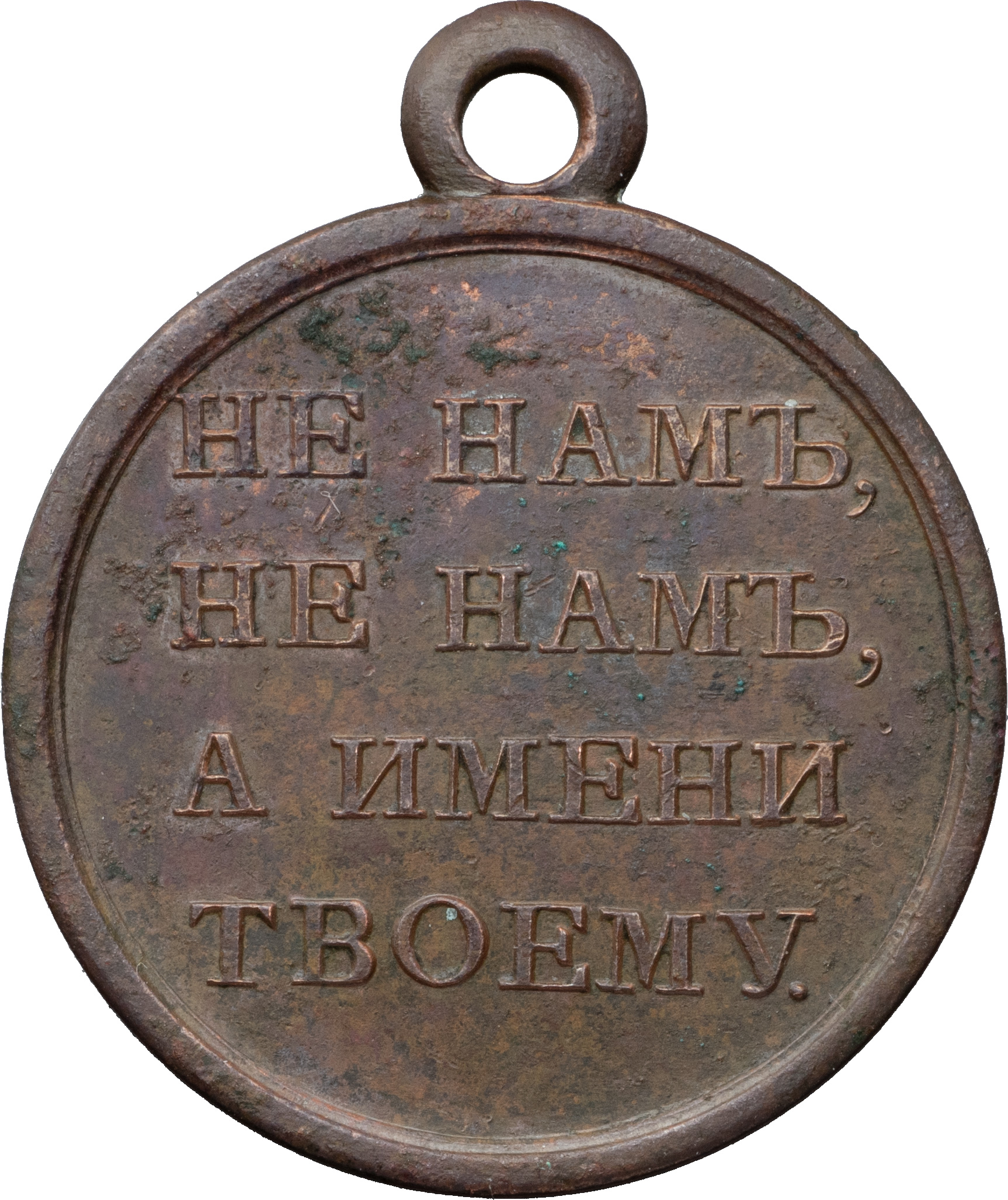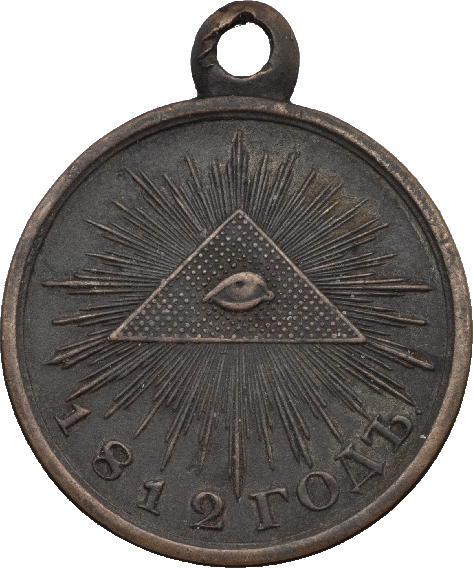 Бронзовая медаль в память Отечественной войны 1812 года была учреждена манифестом Императора Александра I 30 августа 1814 г. для награждения «отцов и старейшин» дворянских семейств и «имеющих отличные и важные заслуги» купцов. Дворяне носили медаль на ленте ордена Св. Владимира, купцы — на ленте ордена Св. Анны. Дворянству разрешалось сохранять медаль у потомков, однако, без права ношения ее потомками. Это право было установлено только в 1912 г. в дни празднования 100-летия Отечественной войны. Медали носили в петлице. Бронзовые медали раздавали на основании списков, присылаемых из губерний. Было отчеканено 64662 больших (28 мм) темно-бронзовых медалей. Надпись на об. ст. медали является непрямой цитатой из Псалтири: «Не нам, Господи, не нам, но имени Твоему даруй славу, по милости Твоей и по истине Твоей!» (Пс. 113, 9).
