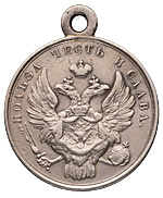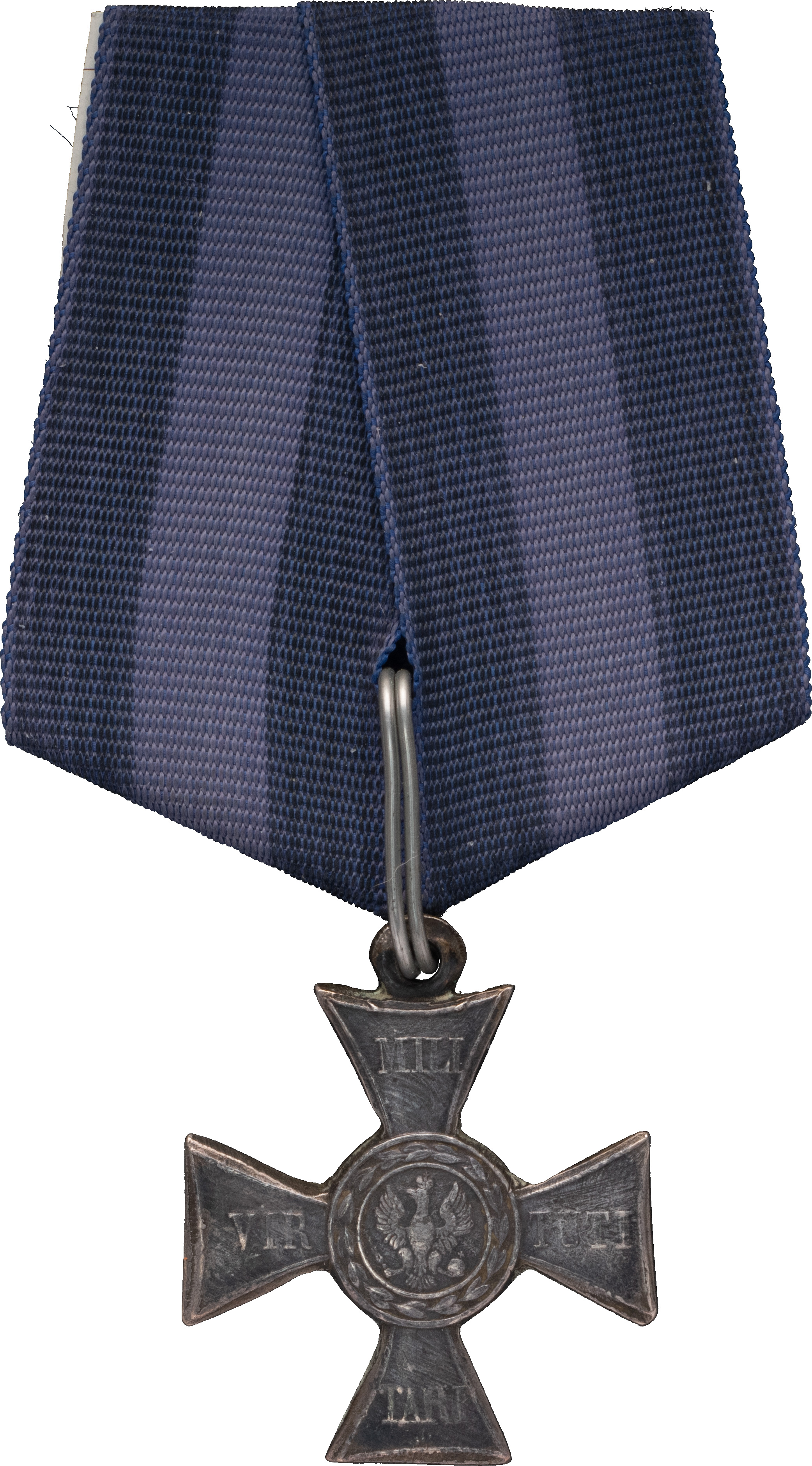 Учрежден 31 декабря 1831 г. Польским знаком отличия за военные достоинства 5-й степени награждали строевых нижних чинов, фельдшеров и цирюльников, участвовавших в усмирении Польского восстания 1830–1831 гг. Указом от 25 июля 1834 г. право на награждение знаком отличия получили и нестроевые чины армии (кроме исправлявших служительские должности — церковных причетников, профосов, денщиков). Польский знак отличия за военные достоинства 5-й степени считался наравне с российскими медалями, его носили на груди наравне с медалями в порядке пожалования их. Представления о награждении знаком отличия принимались до 1 января 1843 г. См. Филипов К., Кулик Б. Польский орден Virtuti Militari в российской императорской армии // Пятнадцатая Всероссийская нумизматическая конференция. Ростов-на-Дону, 20–25 апреля 2009 г.: Тезисы докладов и сообщений. М., 2009. С. 241–242.