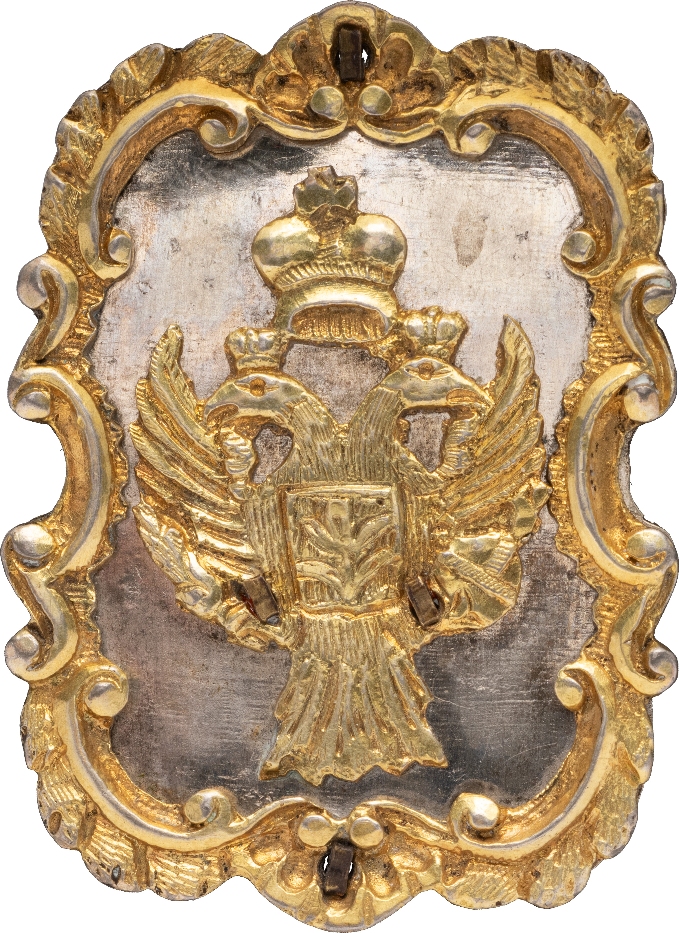 Пряжка от ремня. Российская Империя, конец XVIII — начало XIX в. Неизвестная мастерская. Бронза, позолота, серебрение, 37,29 г. Размеры 62,6×45,7 мм. Сохранность отличная. Довольно редкая.
