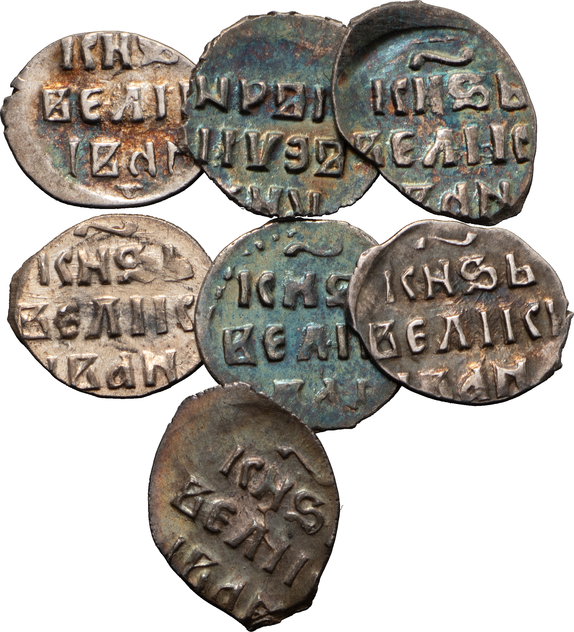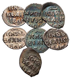 Лот из 7 проволочных серебряных монет: Князь Иван IV Васильевич (1533–1584)