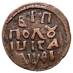 Полушка 1709 года. Лиц. ст.: вверху розетка. Об. ст.: вверху точка, «РWССIИ». Медь, 2,06 г. Сохранность хорошая, тёмная рыхлая патина, следы коррозии. ГМ# 50.5. Brekke# 38 (черта с точкой) RR. Уздеников# 2303 (точка). Дьяков# 11. ДьяковММ# 2865 (R3). Биткин# 2944 (R2). Очень редкая, 10 рублей по Ильину.