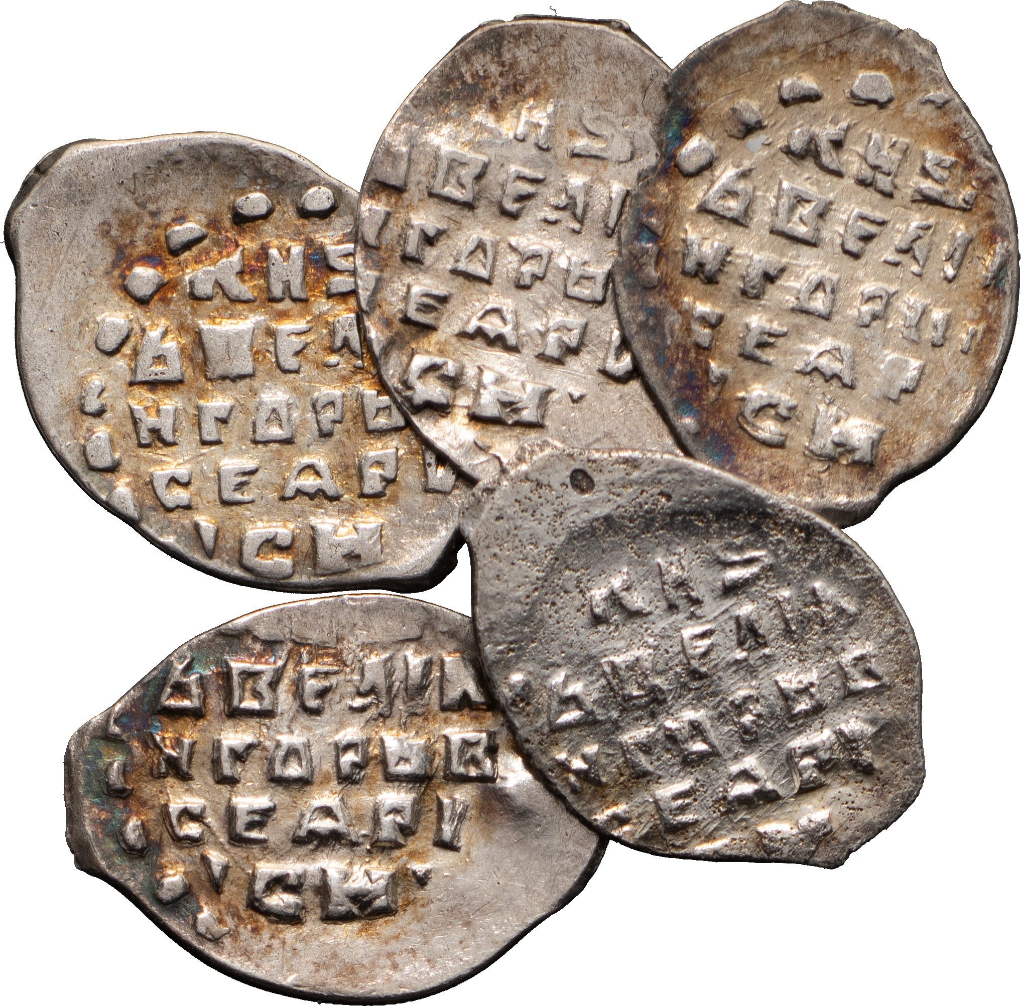 Лот из 5 проволочных серебряных монет: Князь Иван IV Васильевич (1533–1584). Копейка