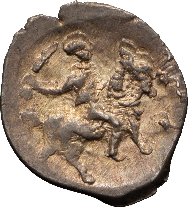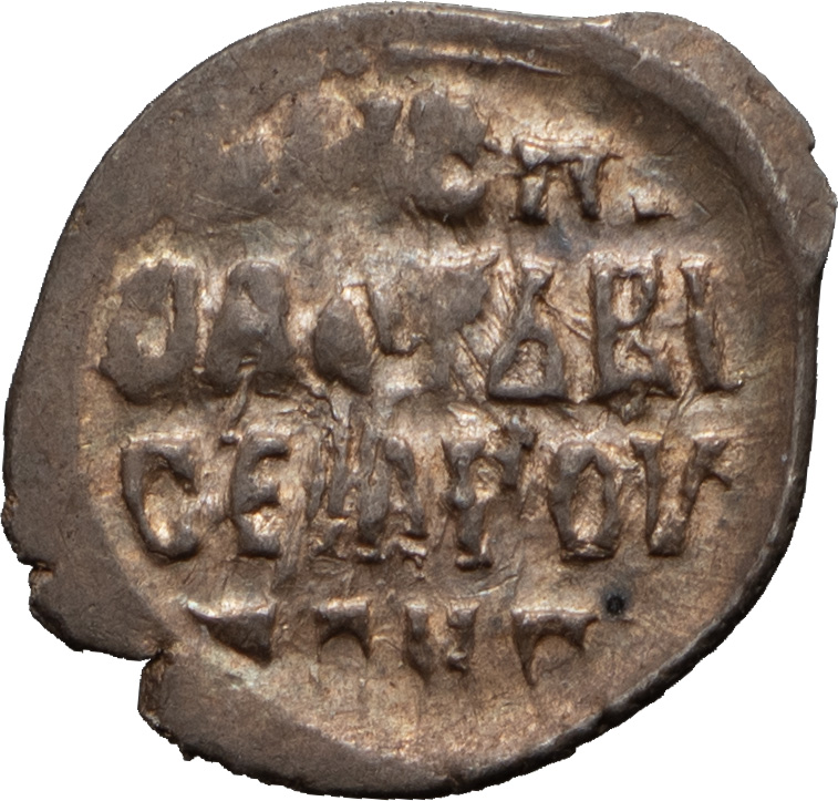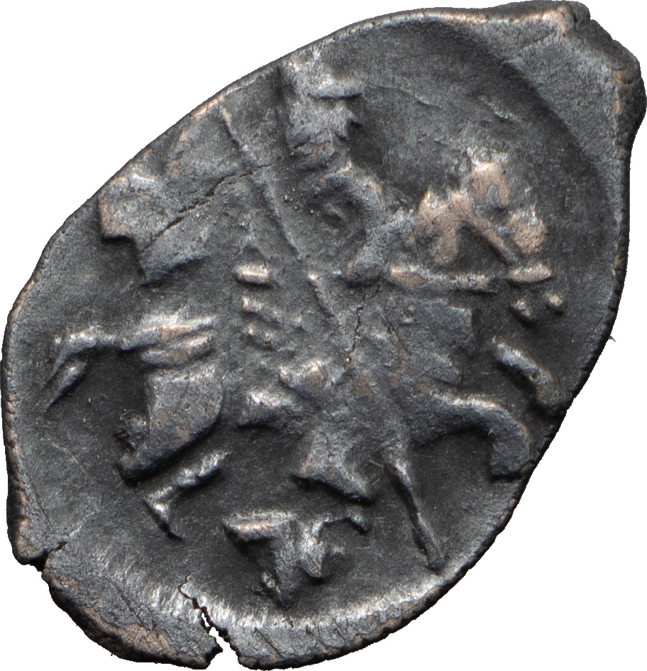 Князь Великий Иван IV Васильевич (1533–1584). Деньга «сабельная». Середина — вторая половина 1530-х гг. Тверской денежный двор, «ОСПОДАРЬ ВСЕЯ РУСИ». Серебро, 0,34 г. Сохранность отличная, приятная патина.