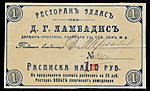 Ресторан Эллас Д. Г. Ламбадис, Харбин-пристань, Пекарная улица, соб. Дом № 5. Расписка на 1 рубль н/д