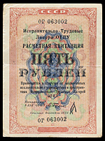 Исправительно-Трудовые Лагери ОГПУ. Расчетная Квитанция 5 рублей 1932 года