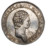 1 рубль, без даты (1802), СПБ, LEBERECHT. Новодел. Лиц. ст.: портрет Императора Александра I в линейном ободке. Об. ст.: «ГОСУДАРСТВЕННАЯ РОССИЙСКАЯ МОНЕТА РУБЛЬ С. П Б.». Гурт косая насечка. Серебро, 20,54 г. Сохранность превосходная, зеркальное поле, красивая легкая патина. ГМ# нет. Severin# 2526 (черта с точкой). Уздеников# 2230 (черта с точкой). Биткин# Н 644 (R2). Очень редкий, 50 рублей по Ильину.