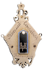 Жетон Ярославского кадетского корпуса. Россия, 1917 г. Неизвестная мастерская. Без клейм. Серебро, позолота, оксидирование, эмаль, 14,17 г. Размеры 44,0×27,2 мм. Сохранность почти отличная, мелкие поверхностные сколы на эмали, цепочка отсутствует. Селиванов# 474. Принадлежал Н.С.Новицкому. Гравировка на об. ст. жетона: «Николай — Сергѣевичъ / Новицкiй». Редкий.