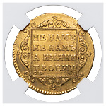 5 рублей 1801 года, СМ-АИ. Золото. Монета в пластиковой капсуле (слабе) ННР, AU det, коллекция Казакова В. В. ГМ# 5.1. Severin# 370 (точка). Уздеников# 0181 (точка). Биткин# 8 (R). Очень редкие, 15 рублей по Петрову.