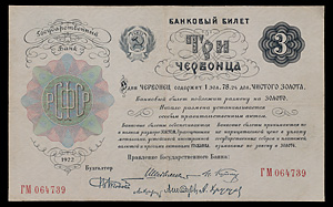 РСФСР. Билет Государственного Банка 3 червонца 1922 года