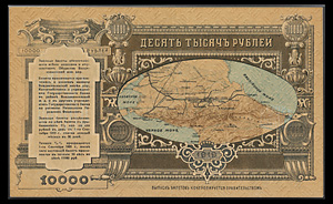 Общество Владикавказской железной дороги, выпуск из 5,4 % сроком на 2 года. Заемный Билет 10000 рублей 1919 года