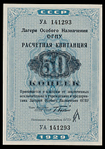 Лагери Особого Назначения ОГПУ. Расчетная Квитанция 50 копеек 1929 года